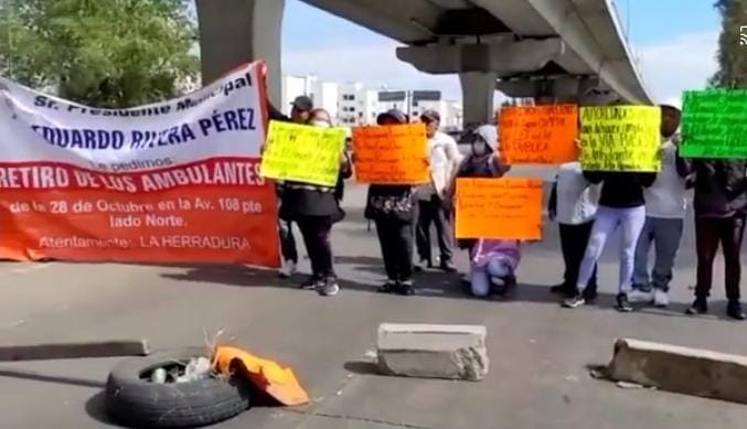 Desde la mañana de este jueves, locatarios de la zona comercial La Herradura, en la Central de Abasto de Puebla, bloquearon la circulación sobre los dos sentidos de la Vía Corta a Santa Ana Chiautempan, en modo de protesta por la invasión de vendedores ambulantes de la 28 Octubre y es que es desde abril de este año que los comerciantes pidieron desalojar a los vendedores informales que se apostaron poco a poco en las entradas a esta zona del complejo comercial y sobre la avenida Interior Norte C, sin embargo, ante la falta de respuesta y ser ignorados, los ambulantes se extendieron y este jueves fueron motivo de una manifestación.