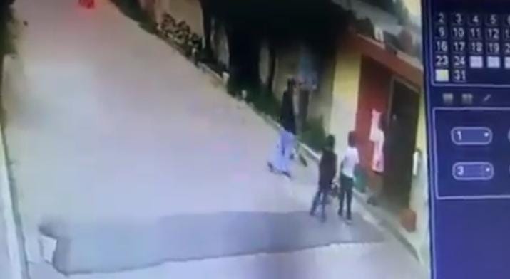 Los hechos se registraron en la colonia La Virgen, perteneciente a la Cuarta Sección, donde en las imágenes se puede ver que dos menores de edad están jugando afuera de su casa con sus bicicletas, cuando dos sujetos a bordo de una motocicleta jalonean a uno de ellos el cual corre a una vivienda para pedir ayuda.